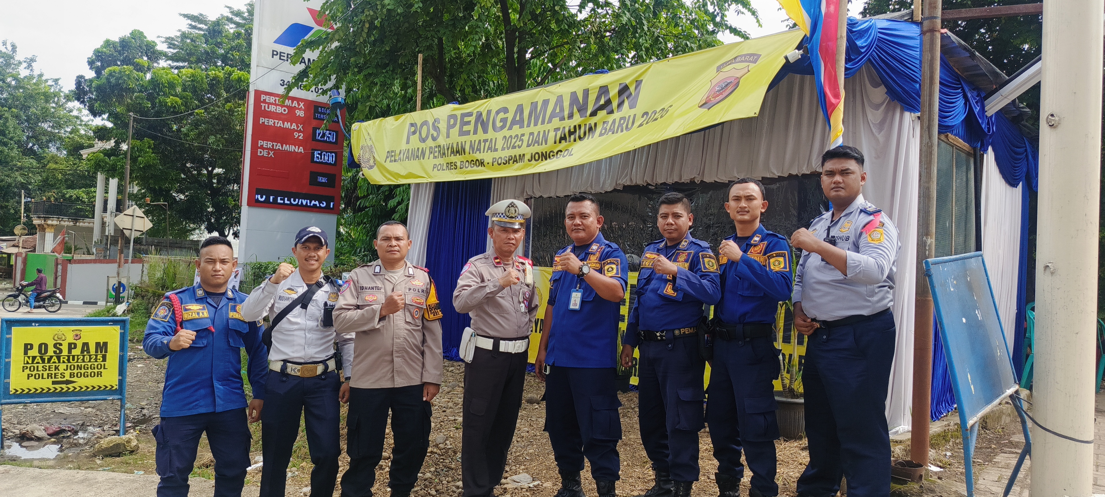 Pos pengamanan (Pospam) NATARU 2025-2026 yang terletak di pinggir jalan raya provinsi Jonggol – Cariu memberikan pelayanan dan pengamanan bagi warga masyarakat yang melaksanakan Ibadah Natal .