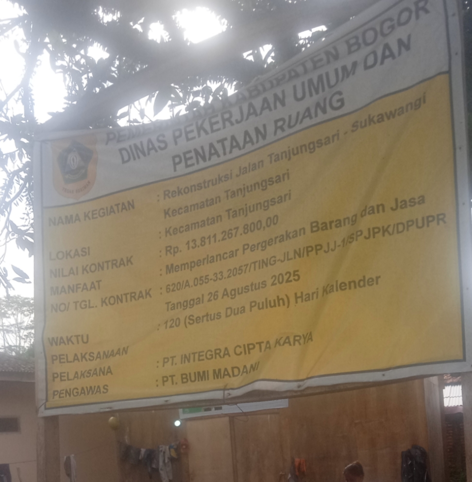 Proyek PUPR Kabupaten Bogor di tanjungsari, Desa Cibadak Menuai Sorotan Publik.